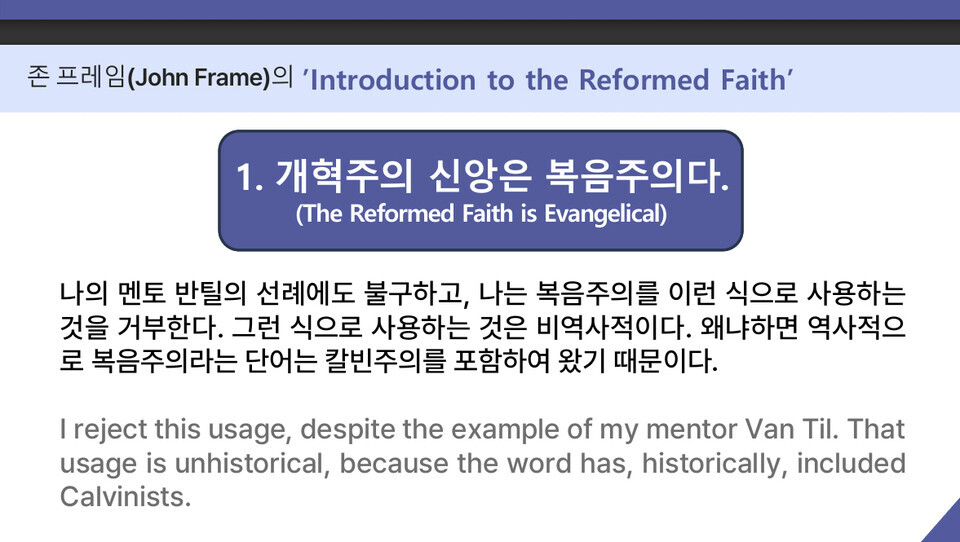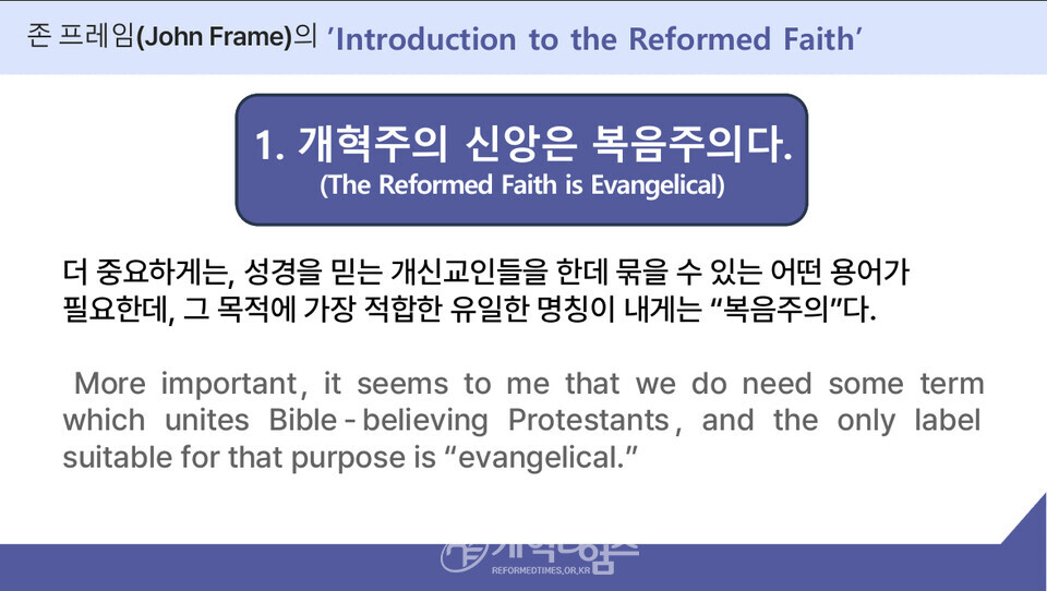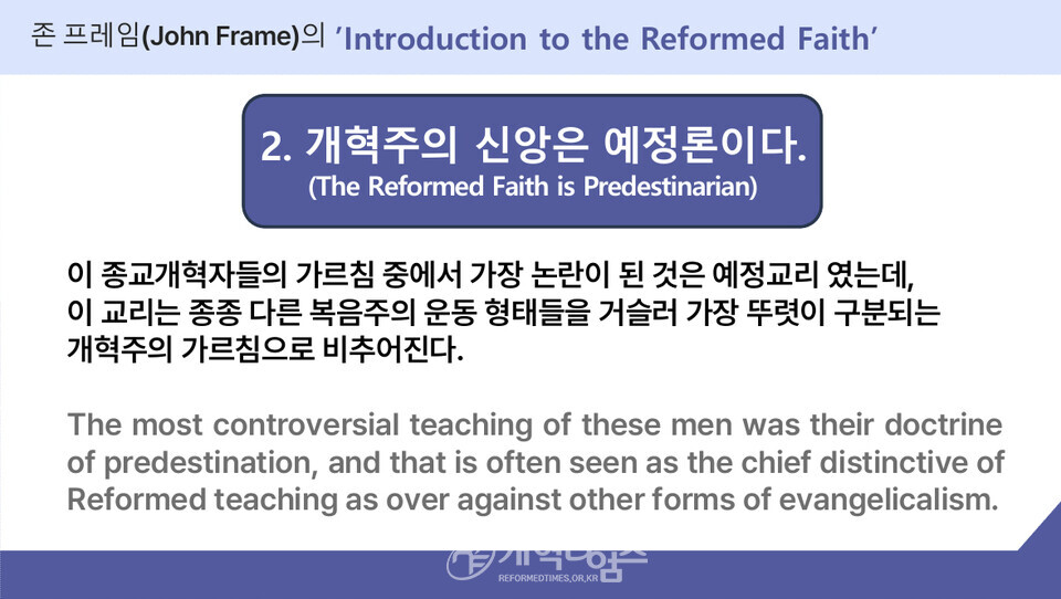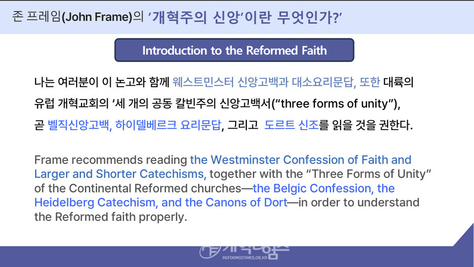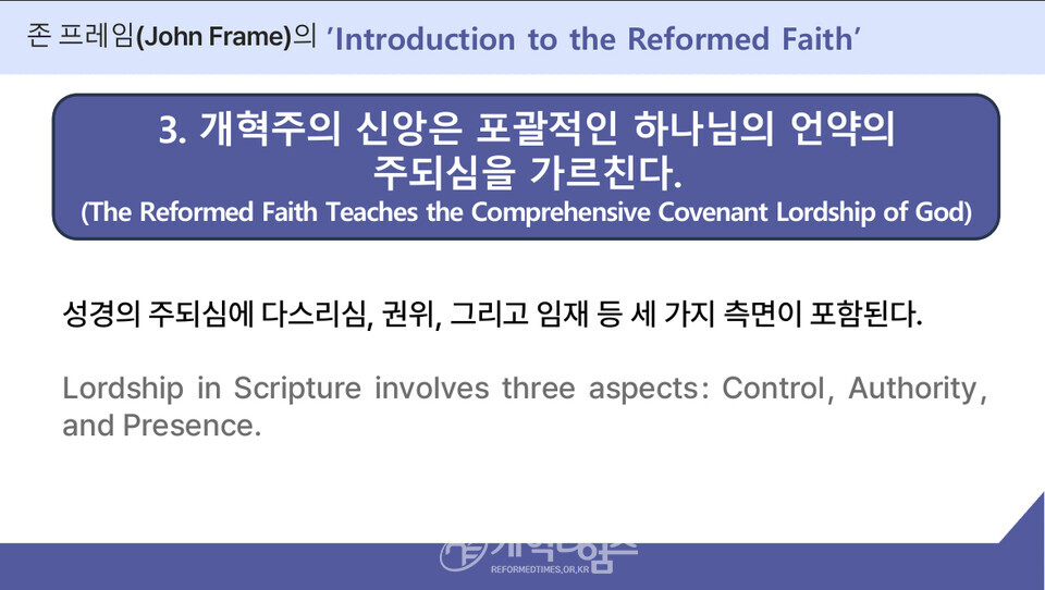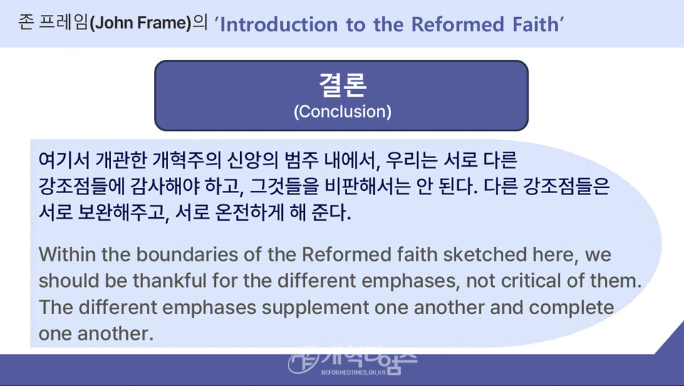 강의 2에서 총신대 역사신학 안인섭 교수는 "역사적으로 개혁교회는 언제나 "성경의 진리"와 "국제적 연대"를 함께 지켜왔다. 16세기 제네바에서 파송된 목회자들이 유럽 각국의 종교개혁을 촉진했듯, 오늘날에도 각 대륙의 개혁주의 지도자들이 모여 서로의 필요를 채우고, 시대적 위기에 대응할 공동 전략을 수립해야 할 때가 되었다.